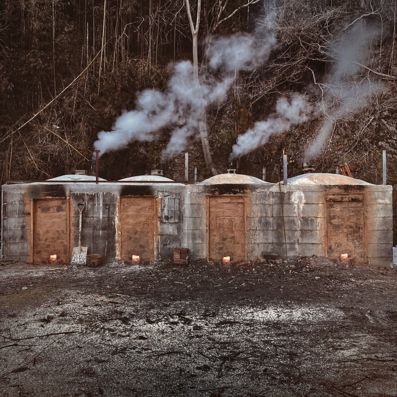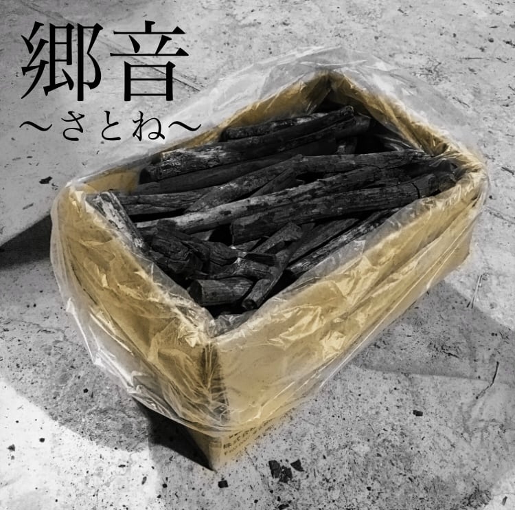 窯の中の奥の奥、1100度の炎が焼き尽くした原木の灰に姿を隠し洗練された樫の炭、郷音。